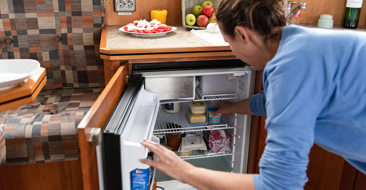 - Gasherd mit Kochplatten, Kühlschrank, elektrisches Licht