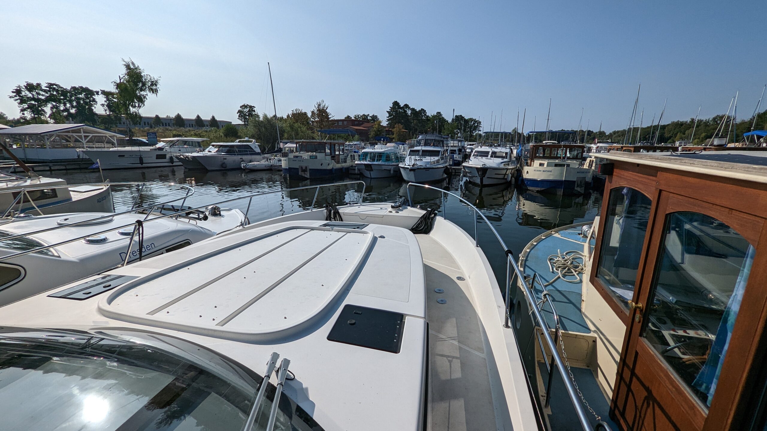 - Es gibt eine ausführliche Einweisung am Übergabetag (bei führerscheinfreien Buchungen in Deutschland ca. 3 Stunden). Das Boot wird um 15 Uhr übergeben.