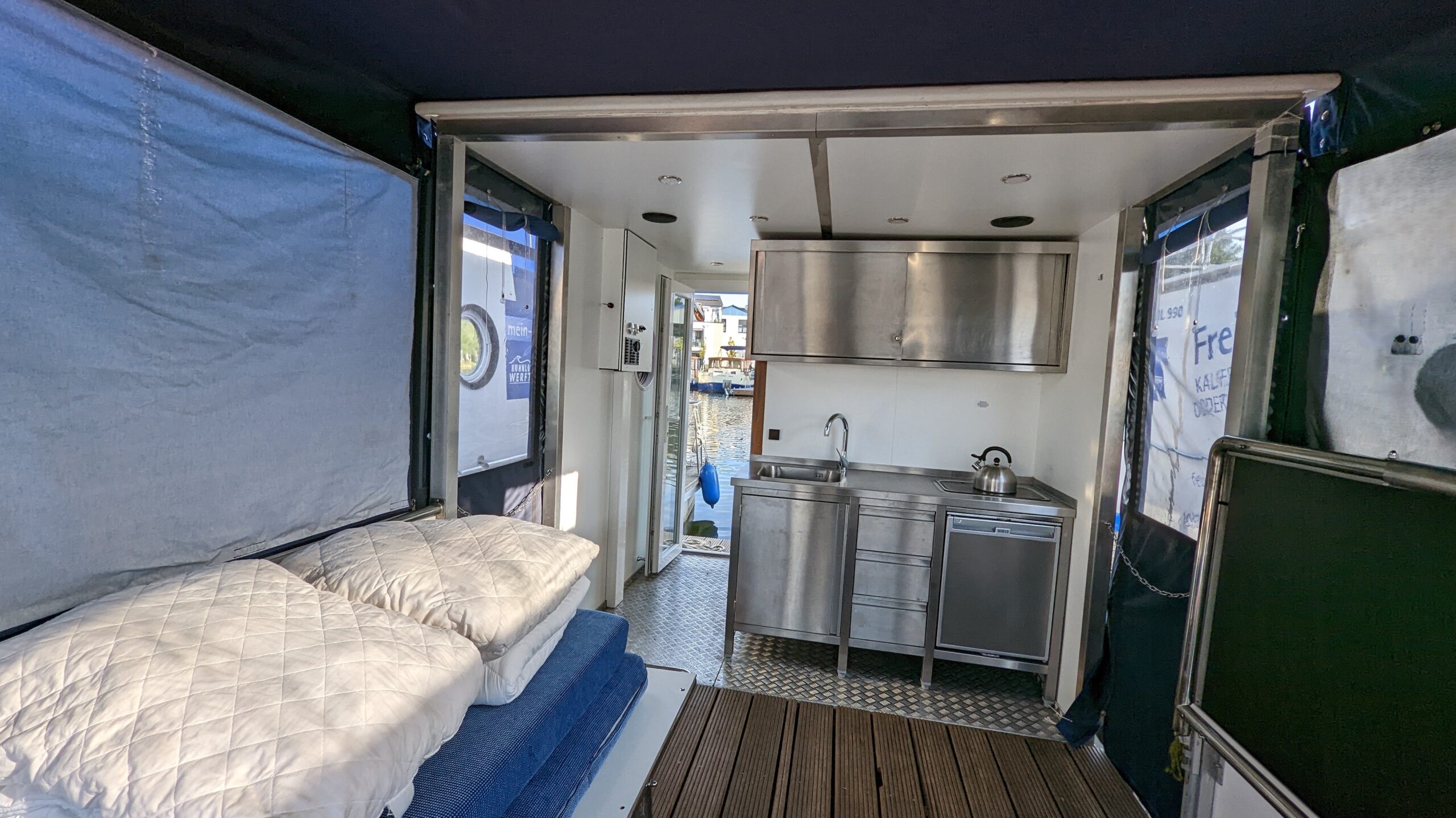 - Zwei fest installierte Feldbetten stehen Ihnen auf dem Boot zur Verfügung