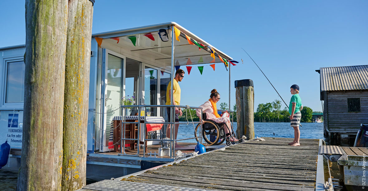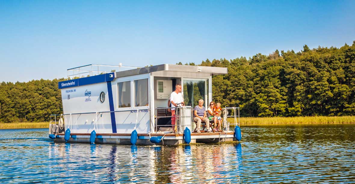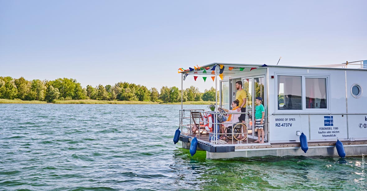 Das Febomobil vereint Ferienhaus und Boot: Hausbootfeeling pur!