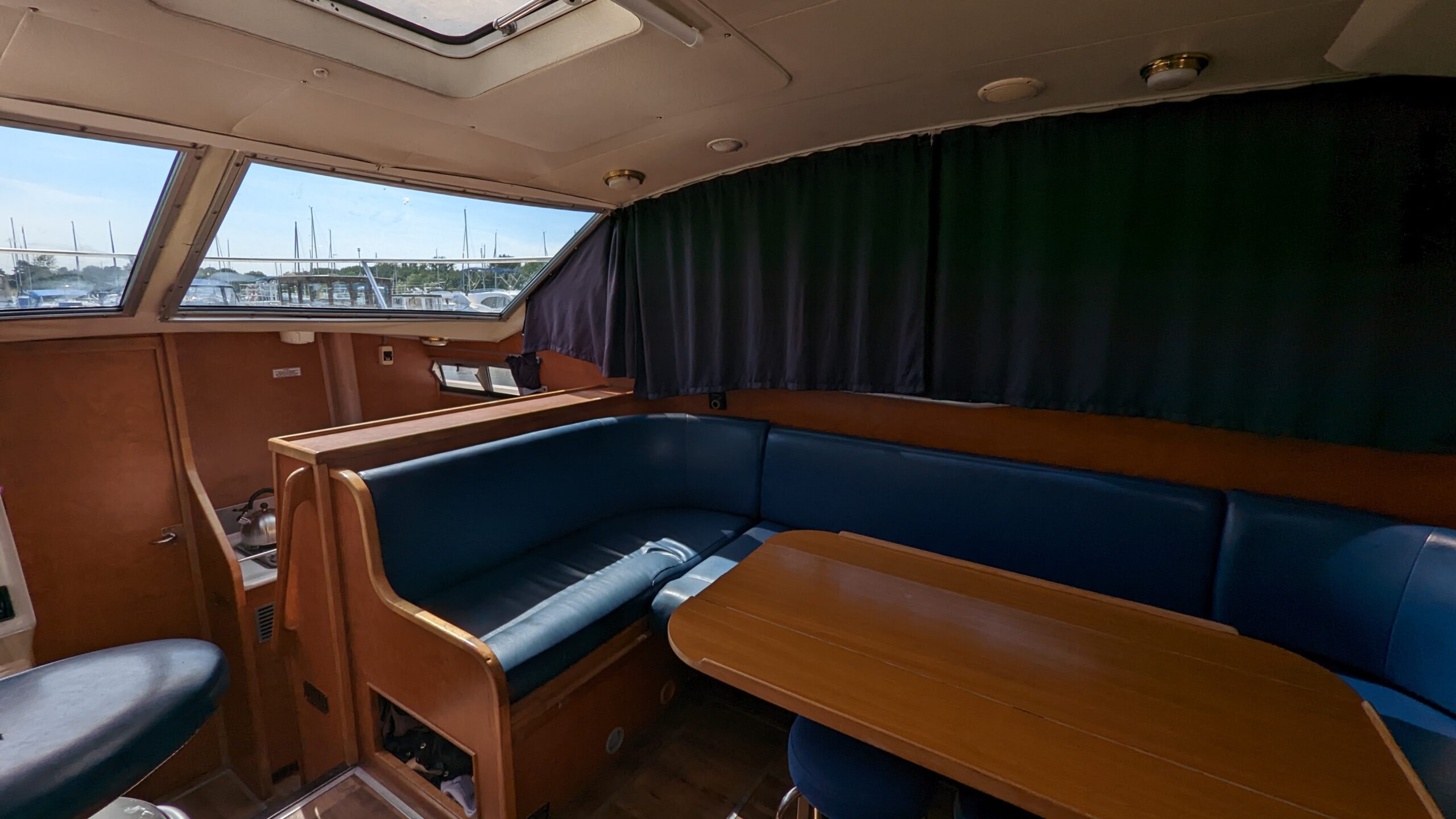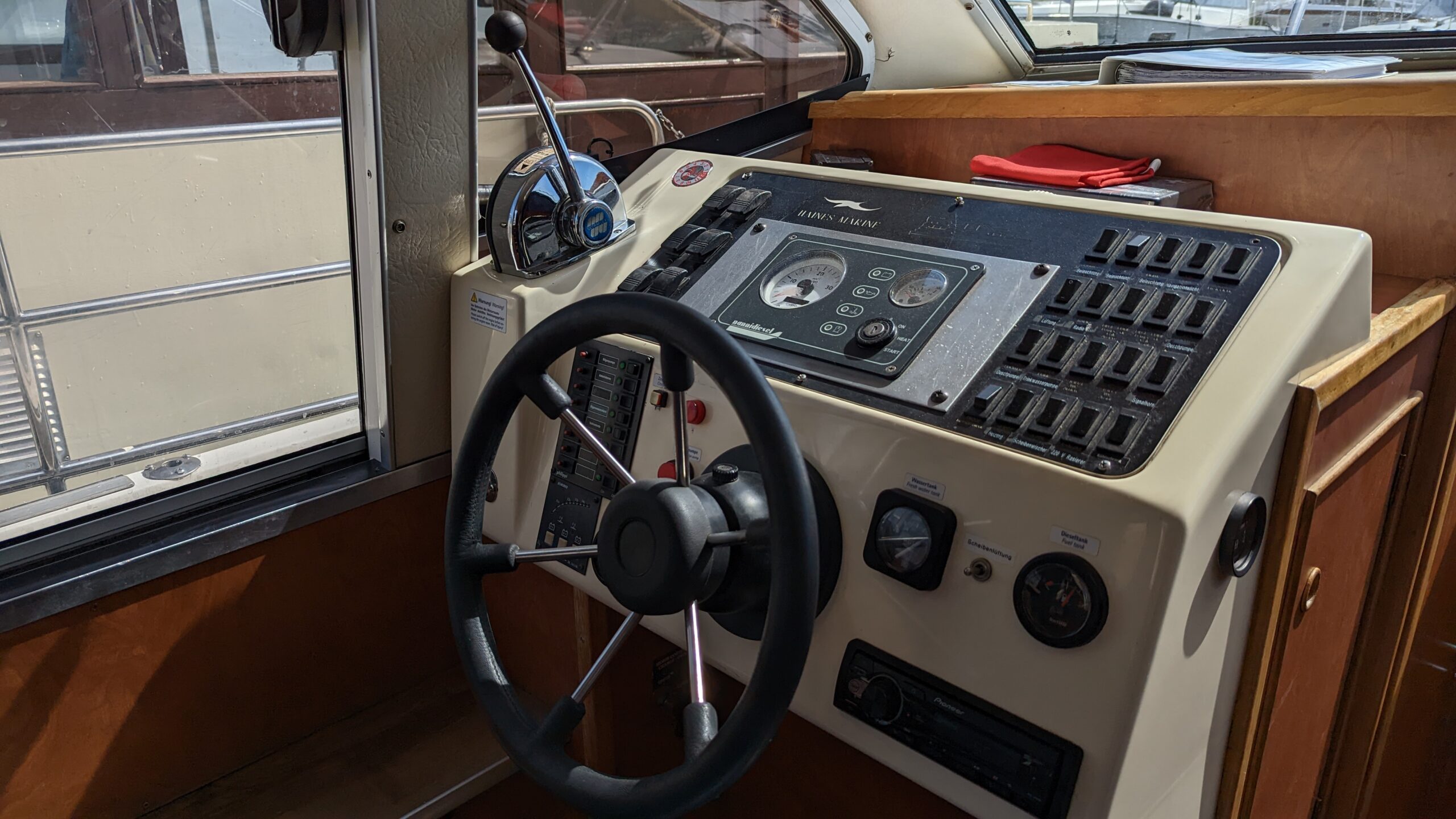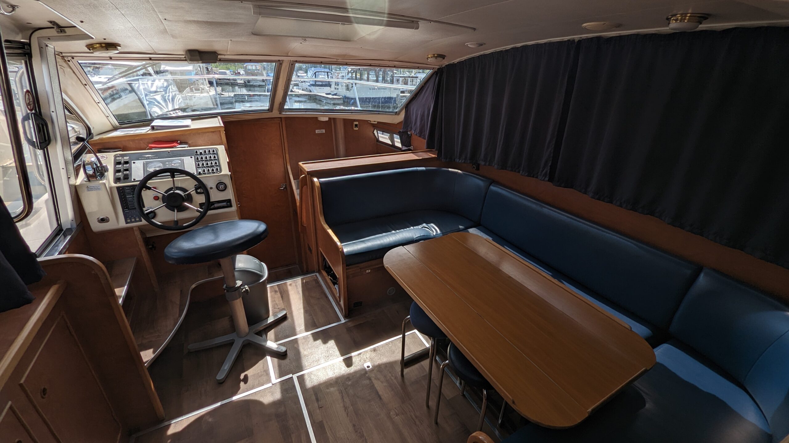 • Steuerstand auf dem Sonnendeck mit eingelassener Sitzecke und Echolot