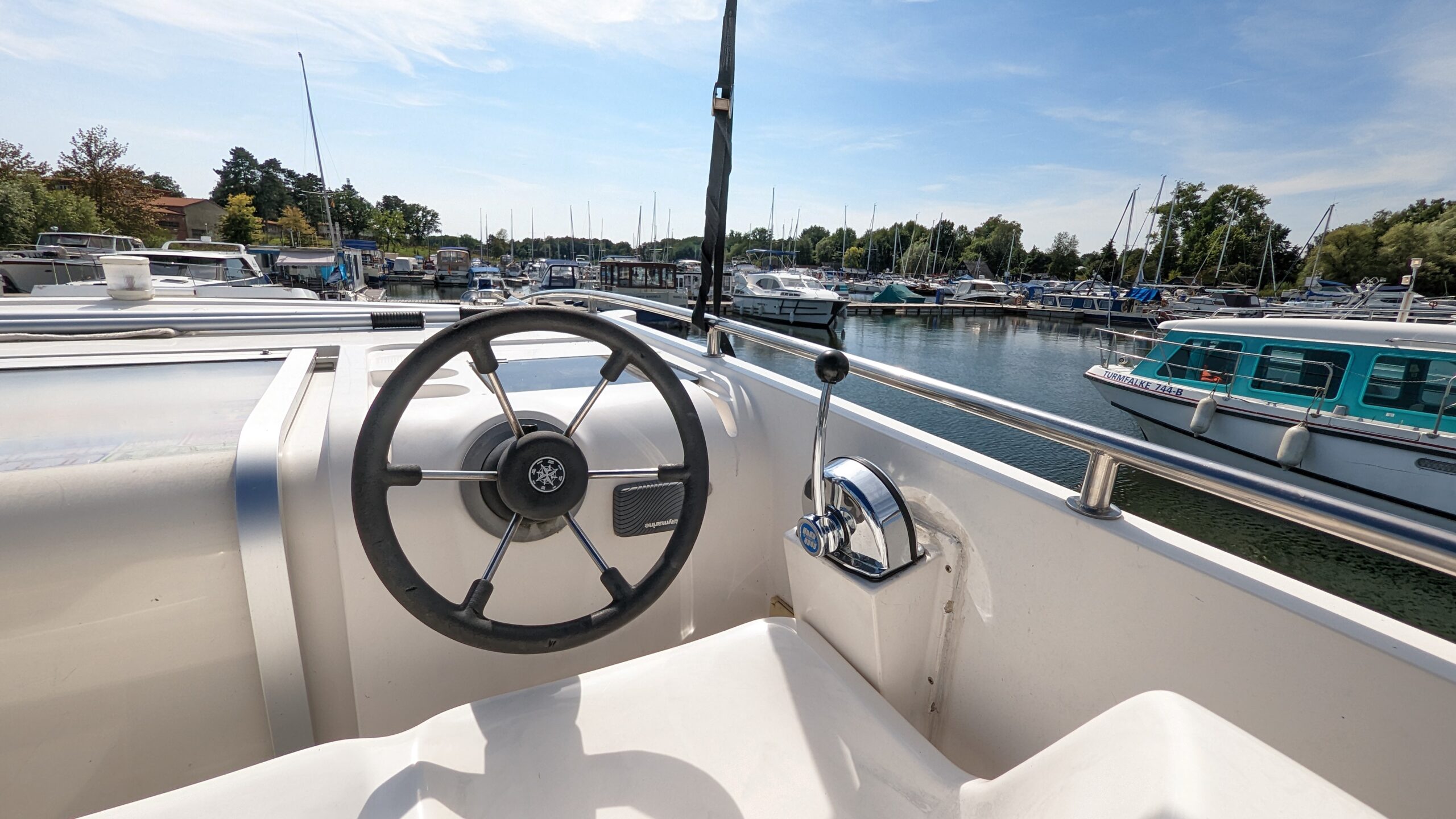 Flott und komfortabel reisen Sie mit diesem Kreuzer über die Seen und Flüsse.