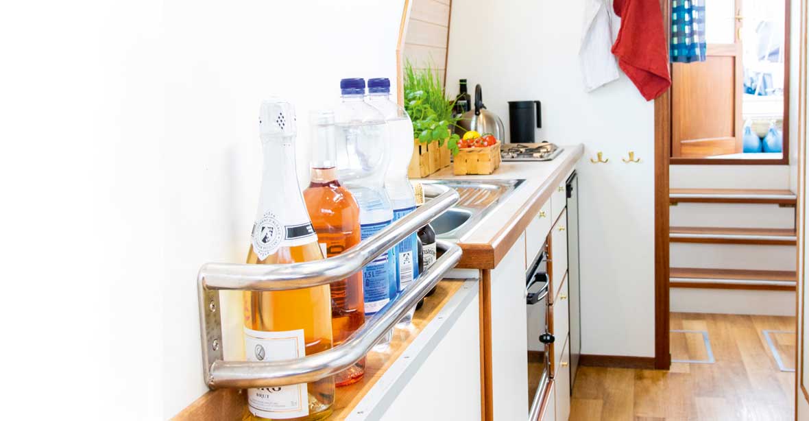 - Komplettes Inventar mit Haushalts- und Bootszubehör, Geschirr, Gläser, Besteck, Kochgeschirr, Küchenzubehör
