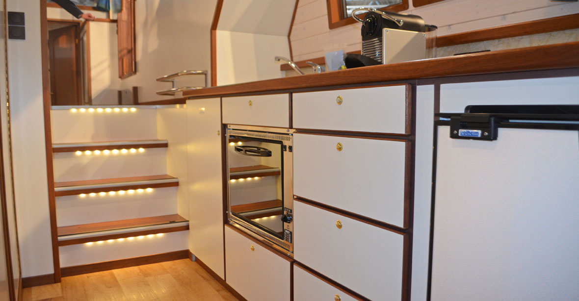 Die Kormoran 1150 stellt eine Weiterentwicklung der Kormoran 1140 dar, sie bietet Ihnen viele zusätzliche Vorteile wie: Fußbodenheizung, elektrische Toiletten und landstromunabhängige Steckdosen und die sehr beliebte Hecktreppe.