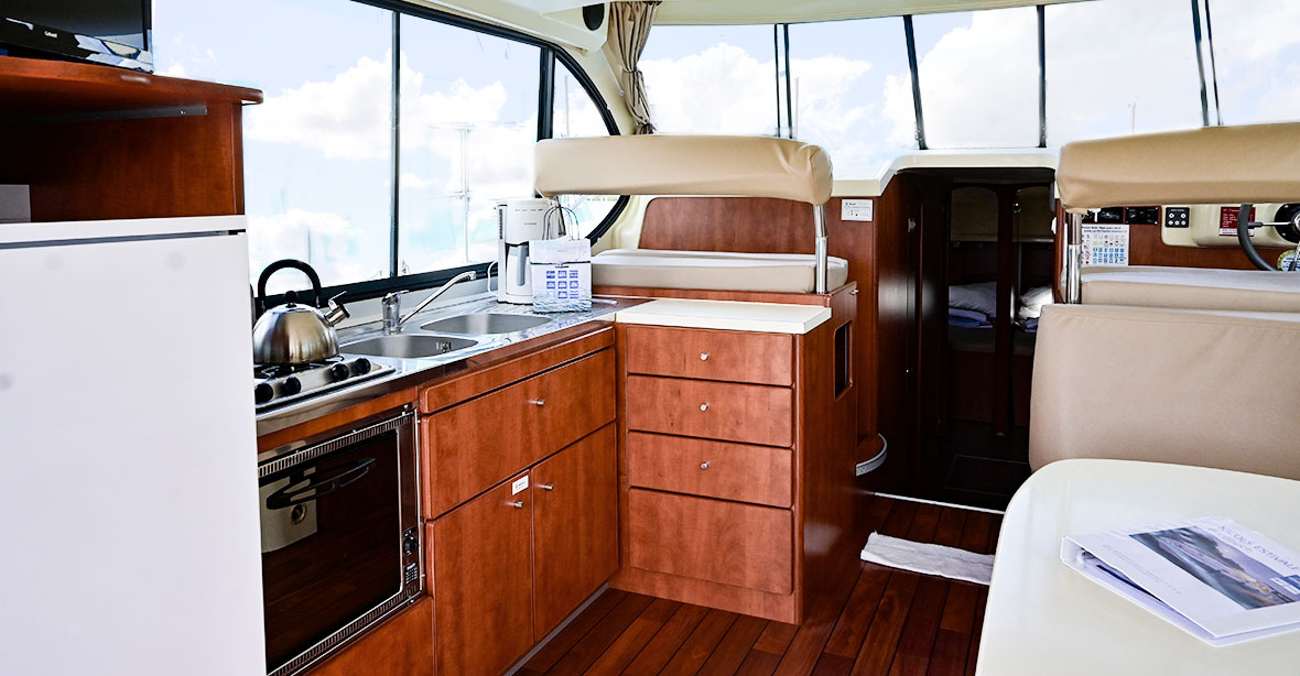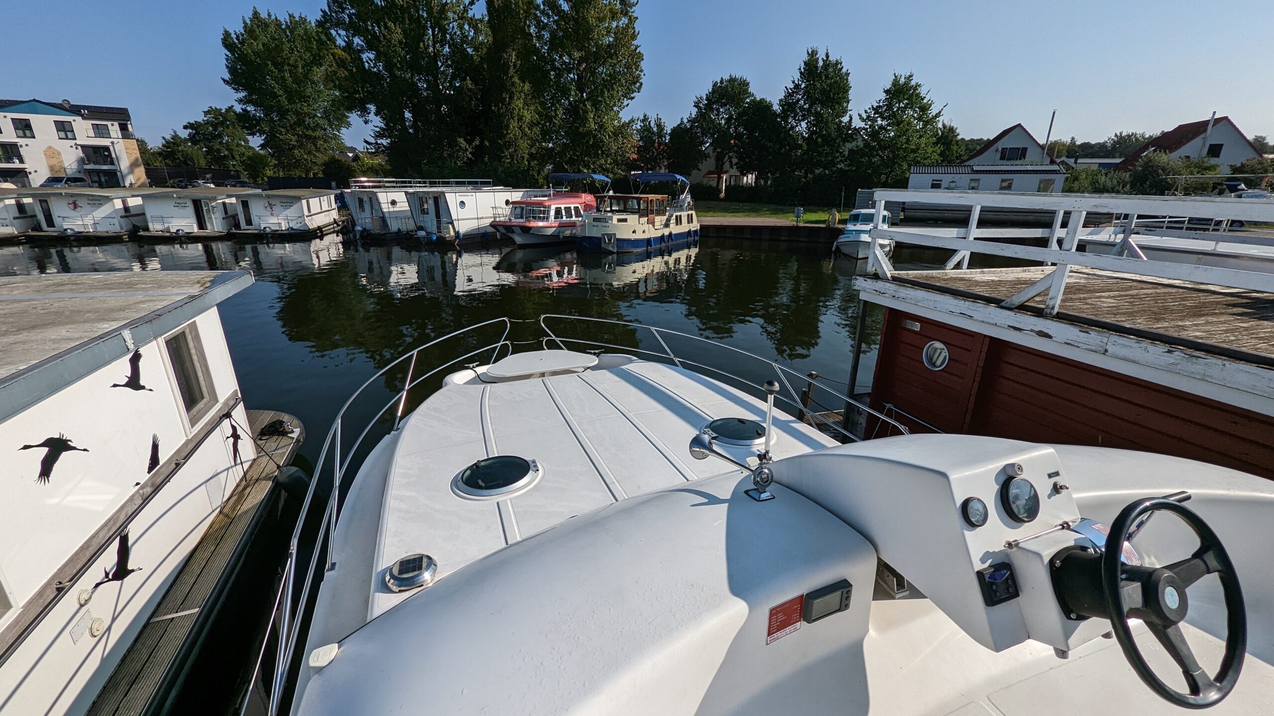 - Es gibt eine ausführliche Einweisung am Übergabetag (bei führerscheinfreien Buchungen in Deutschland ca. 3 Stunden). Das Boot wird um 15 Uhr übergeben.