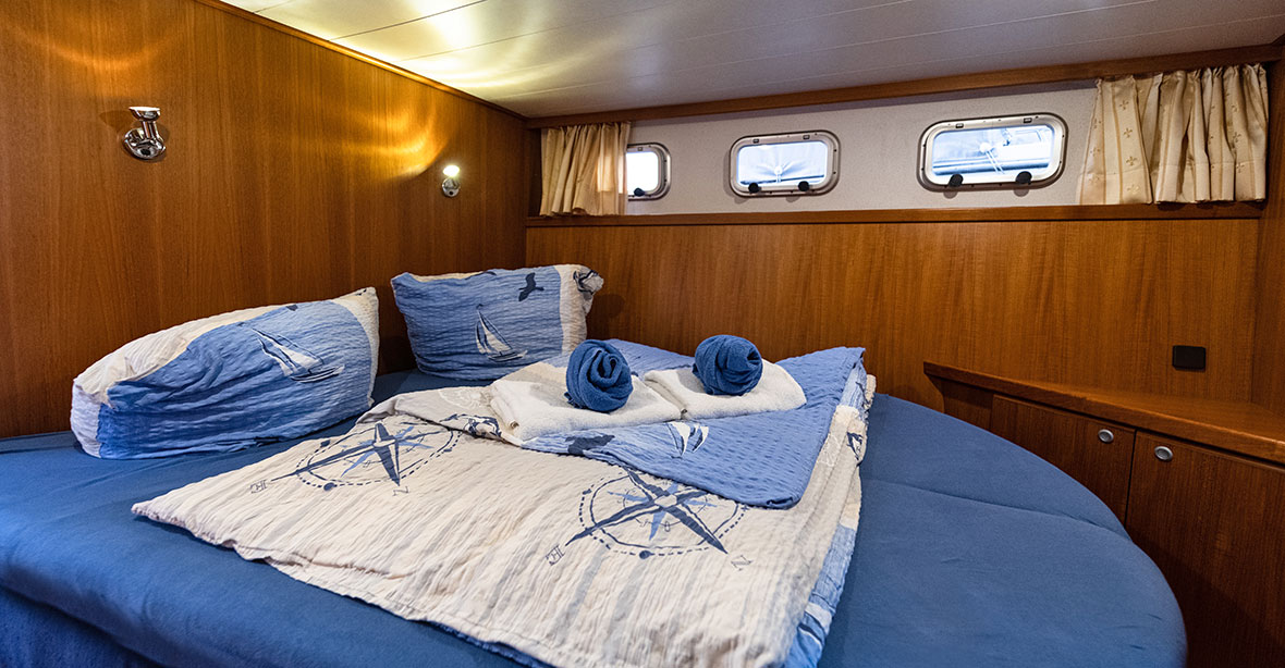 Le Pedro Skiron 35 est un pedro-yacht spacieux pour une occupation idéale de quatre personnes, la proue et la poupe sont presque de la même taille.