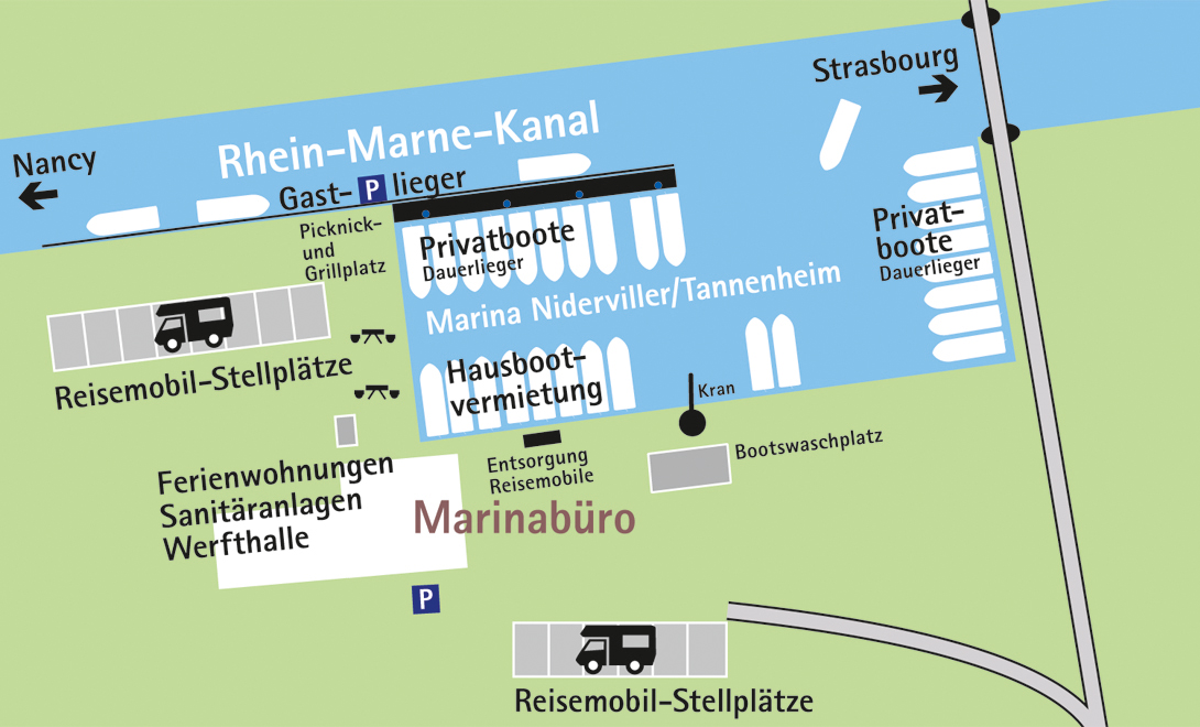 In der Marina Niderviller (Elsass-Lothringen) sind drei gemütliche Apartments im ersten Stock des modernen Hafengebäudes untergebracht. Alle Apartments verfügen über eine komplett ausgestattete Küche, Dusch- oder Wannenbad, WC, TV und WLAN. Bettwäsche und Handtücher sind inklusive.