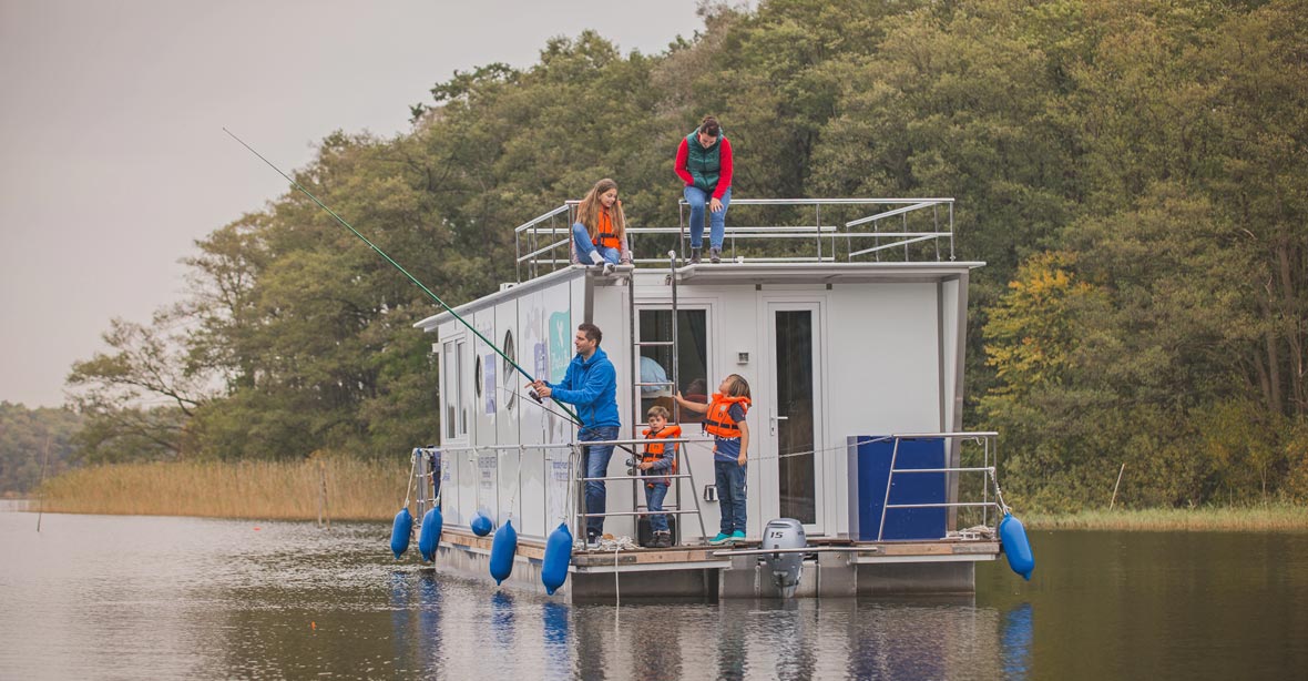 Verbringen Sie Ostern auf unserem größtem Febomobil, dem Febo 1180. Mit geräumiger Badeplattform und Dachterrasse lassen sich Natur und Wasser wunderbar erkunden.