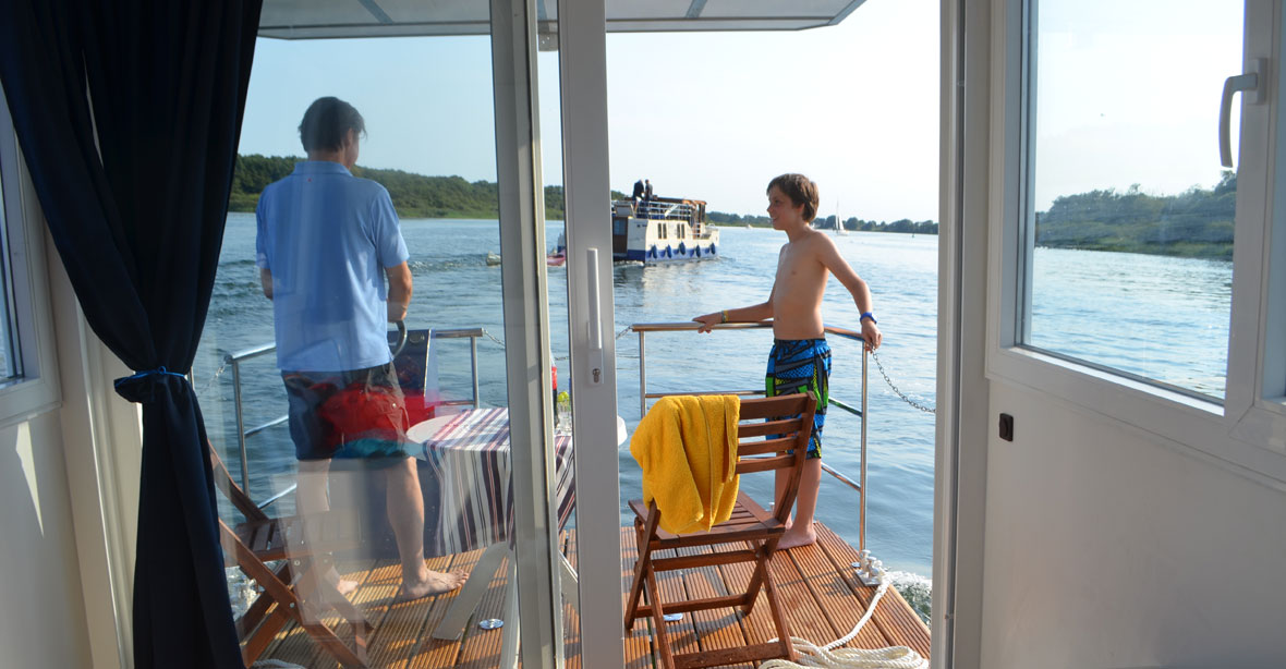 Verbringen Sie den Vatertag auf der Kormoran 940, Ein kleines aber gemütliches Hausboot. Sie ist perfekt um die Feiertage zusammen mit Ihrer kleinen Familie zu verbringen und die Natur zu genießen.