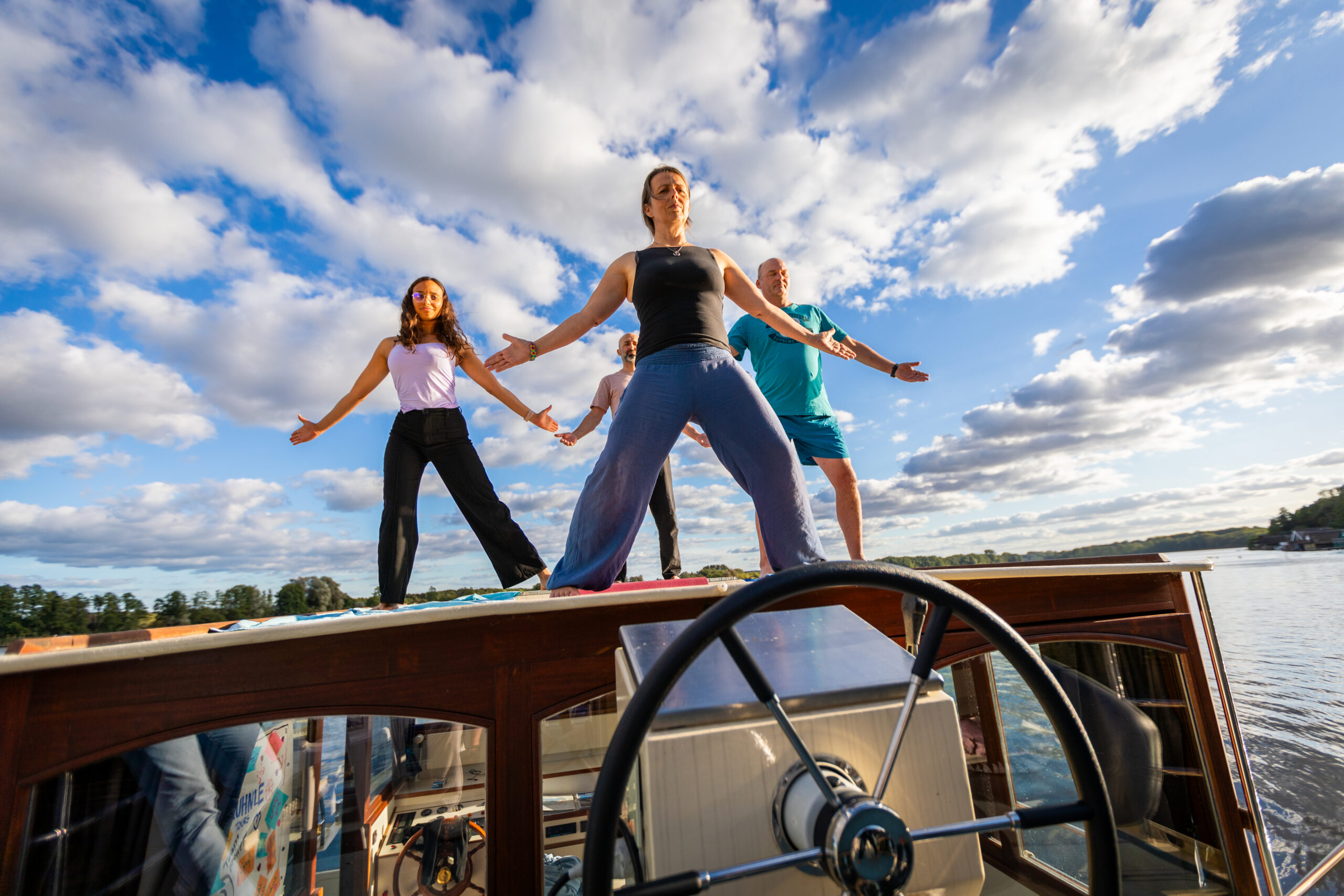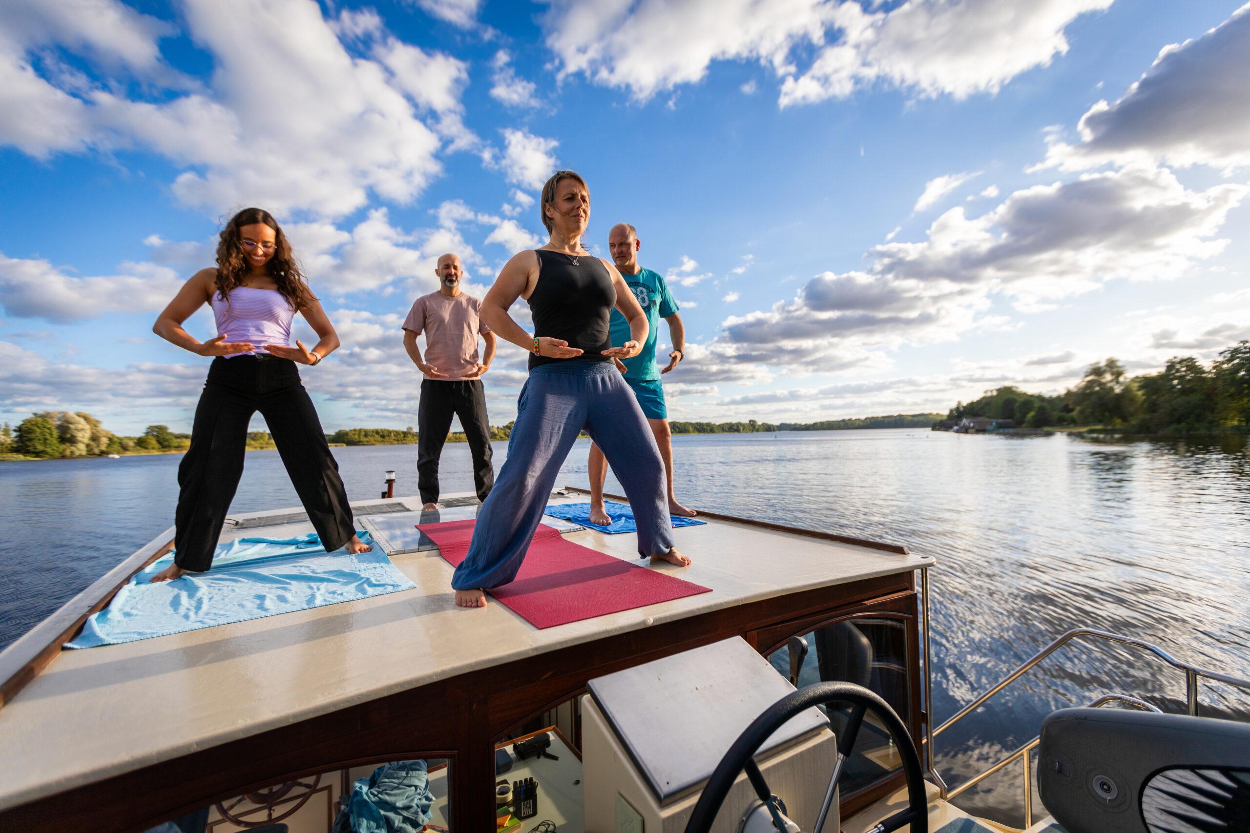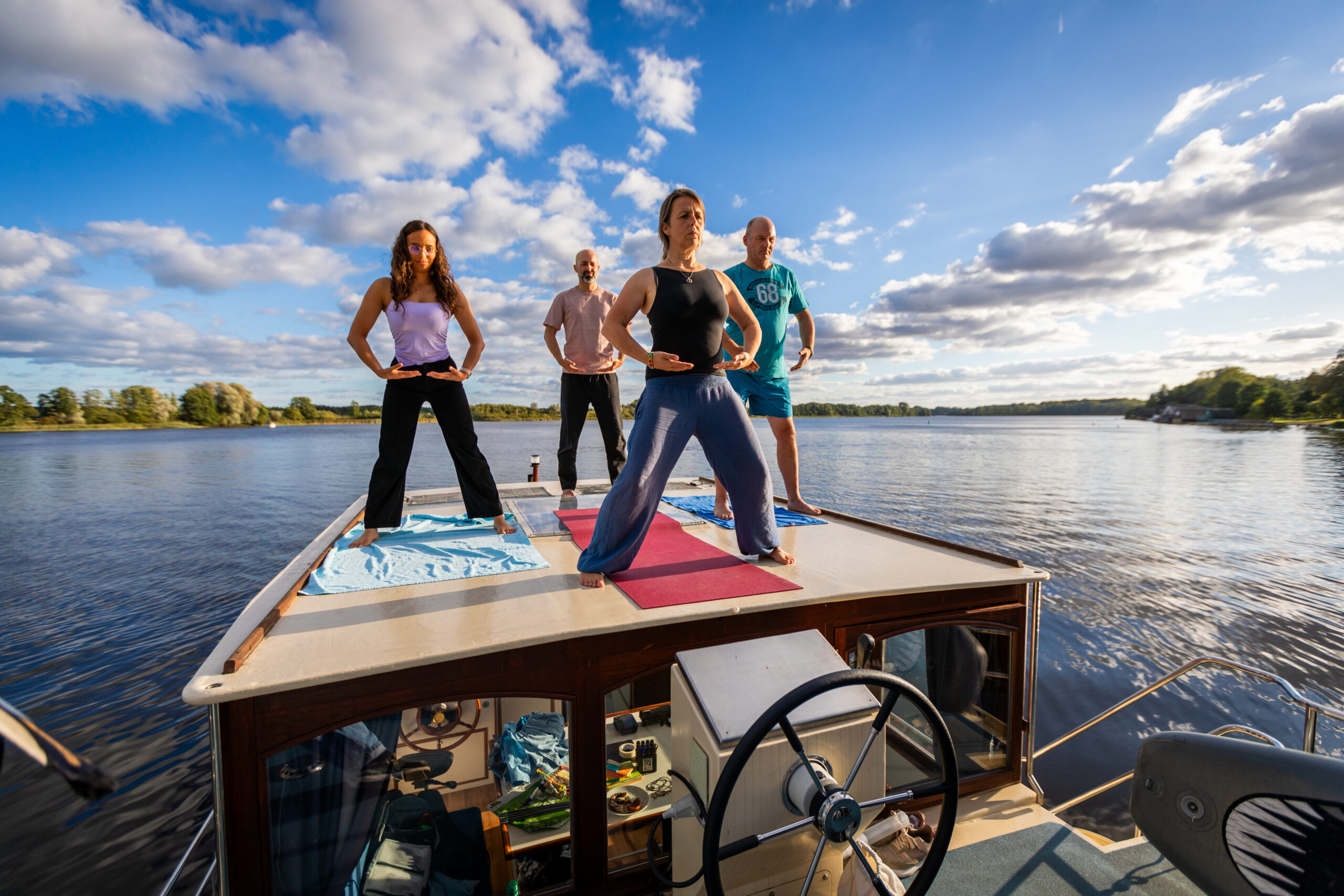 Ob allein, mit Partner oder in einer kleinen Gruppe – ein Hausbooturlaub mit Yoga oder Qigong bietet Ihnen den idealen Rahmen für Entspannung, Achtsamkeit und neue Energie.