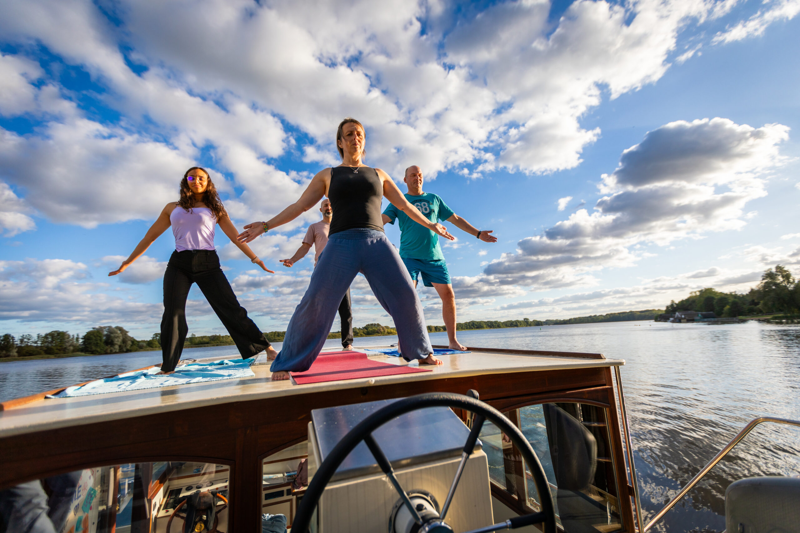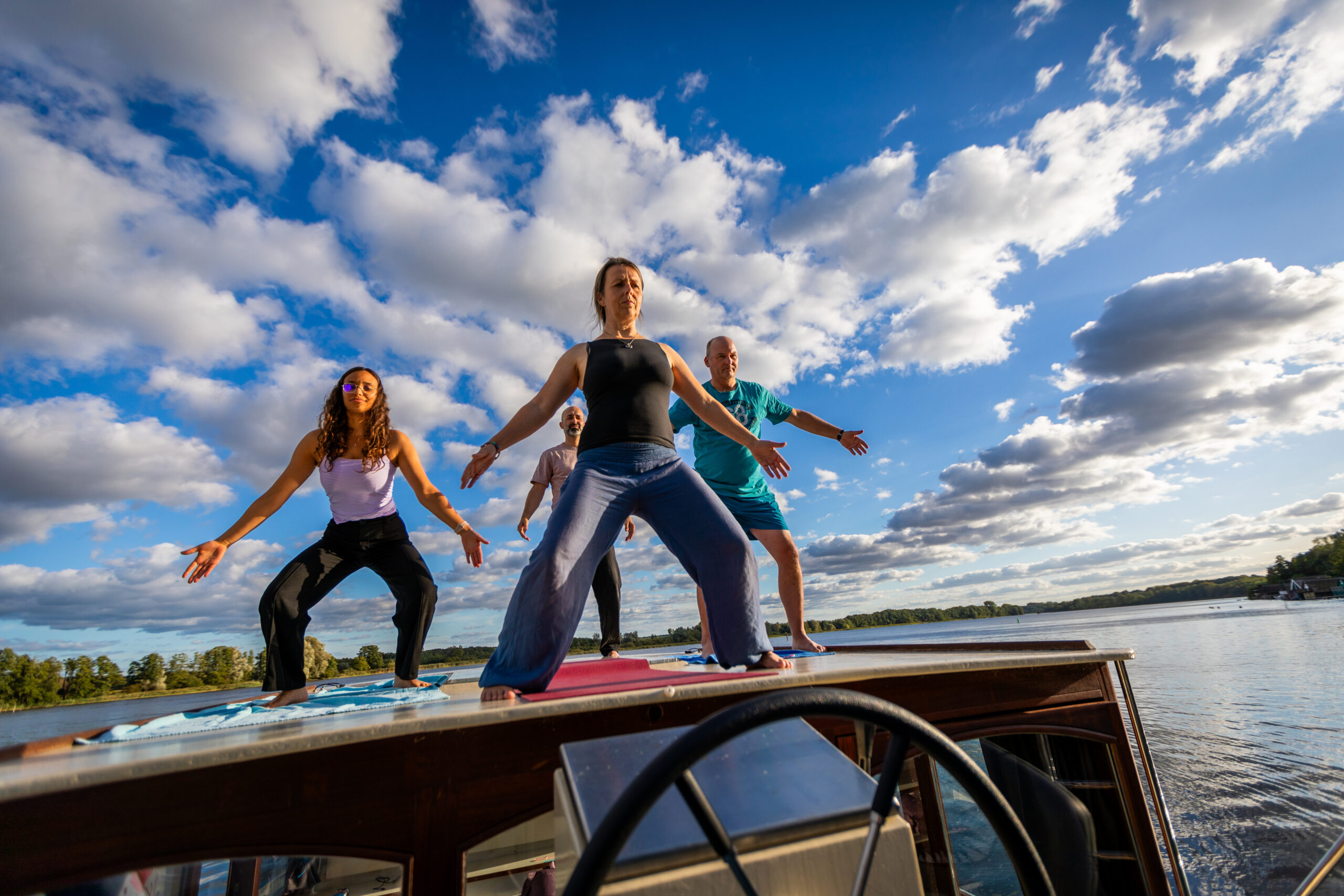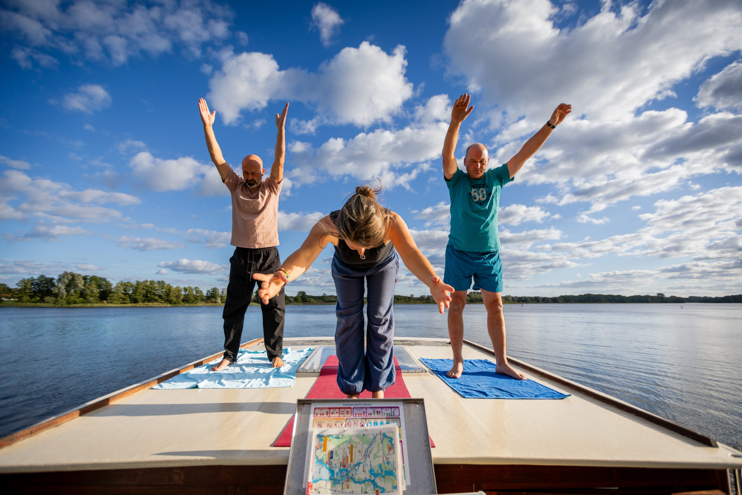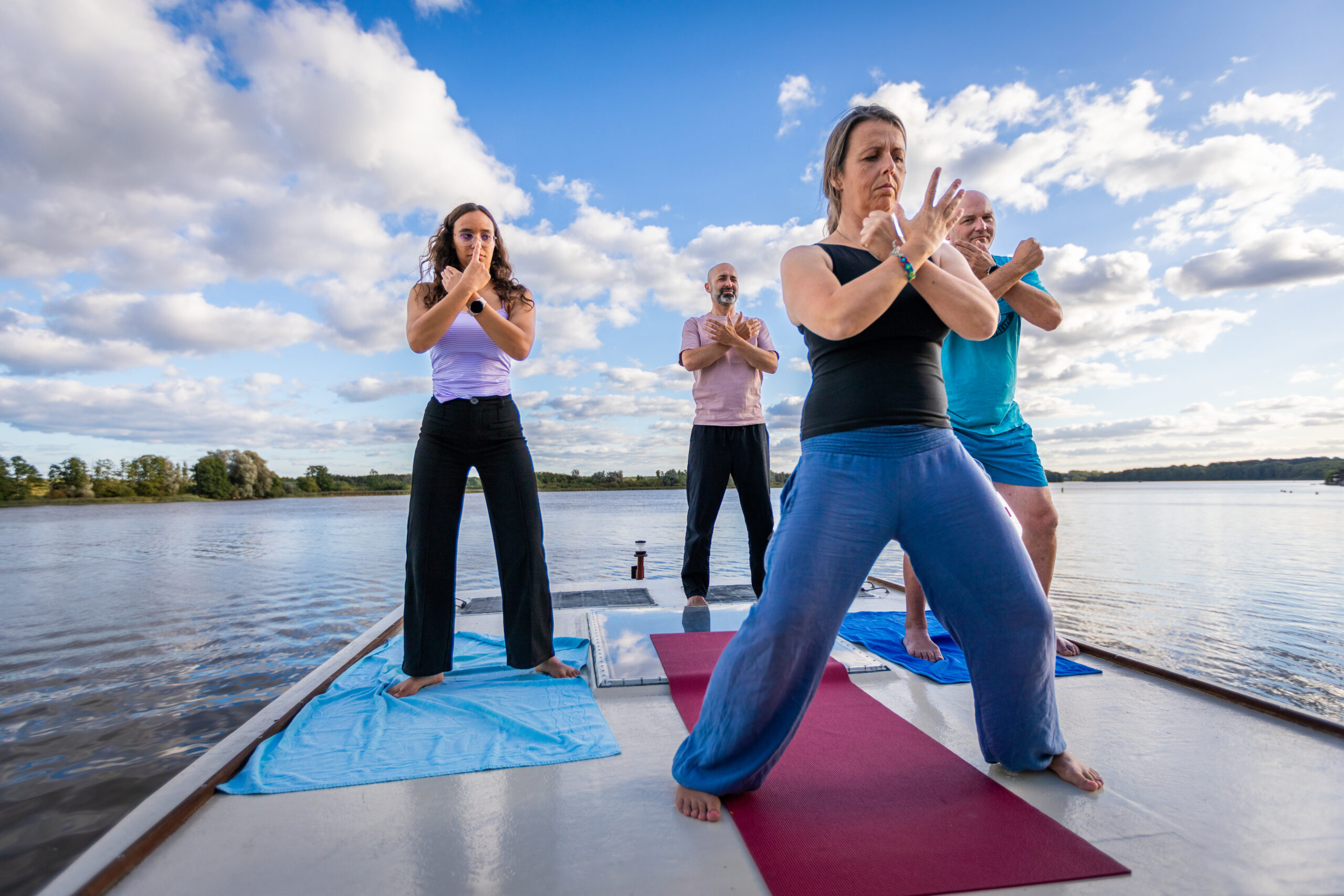 Ob allein, mit Partner oder in einer kleinen Gruppe – ein Hausbooturlaub mit Yoga oder Qigong bietet Ihnen den idealen Rahmen für Entspannung, Achtsamkeit und neue Energie.
