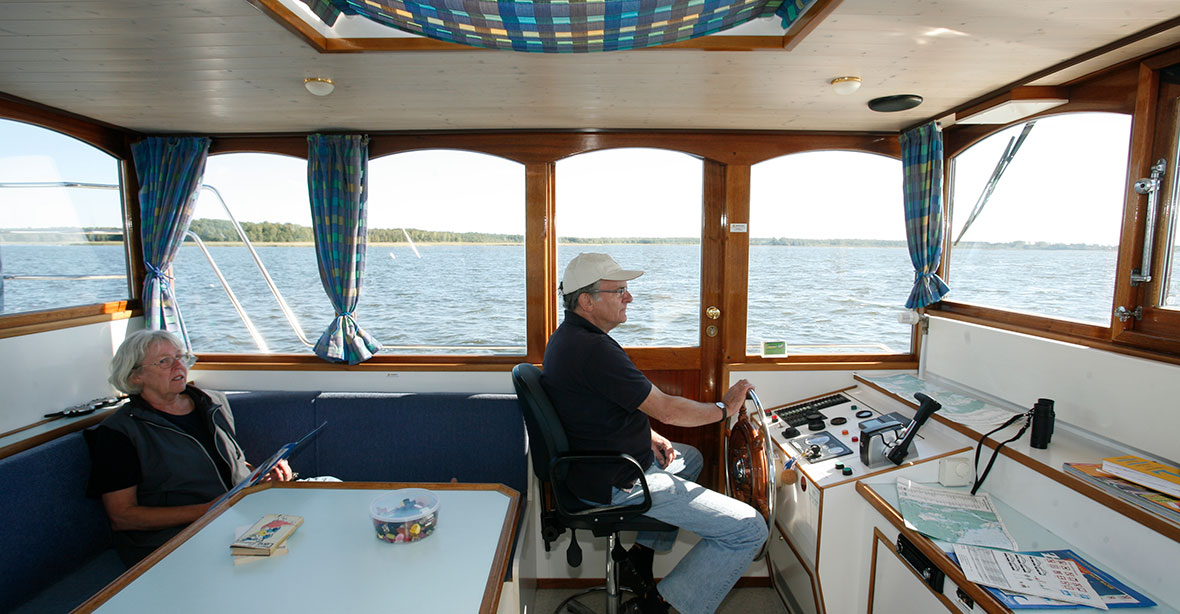 Unsere größte Kormoran ist die Kormoran 1500. Bis zu 12 Personen finden auf diesem Hausboot Platz, es eignet sich daher perfekt für große Gruppen oder mehrere Familien. Die Kormoran 1500 besticht durch einen geräumigen Außenbereich, eine großzügige Stehhöhe unter Deck, Warmwasserheizung und viele weitere Ausstattungsmerkmale.